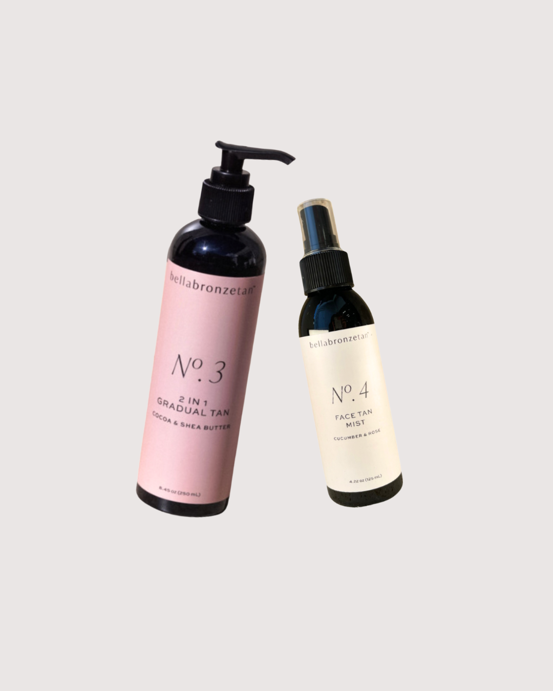 Your glow doesn’t stop after the first tan and these two are your go-to duo for maintaining a rich, natural-looking bronze with zero mess. Featuring our skin-nourishing 2 in 1 Gradual Tan & moisturiser and hydrating Face Tan Mist, this glow-preserving pair keeps your tan fresh, even, and luminous. Perfect for holiday touch-ups or as needed to maintain your glow.