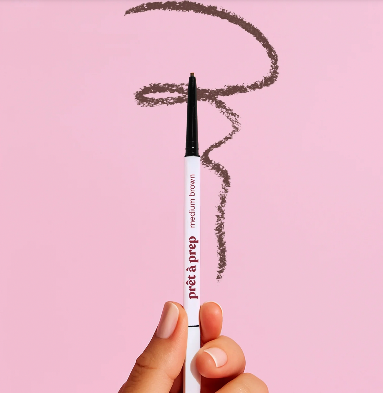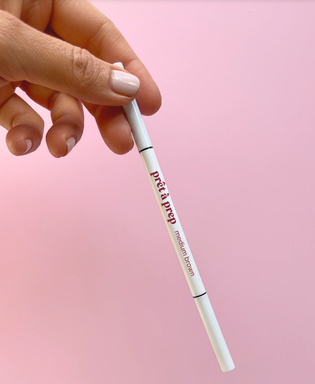 With light, upward strokes, focus on sparse areas, feathering the pencil strokes so they resemble natural hair. - Build up in sparser areas to achieve a darker colour - Use the spool brush on the opposite end and brush through your brow, from front to tail to soften and blend