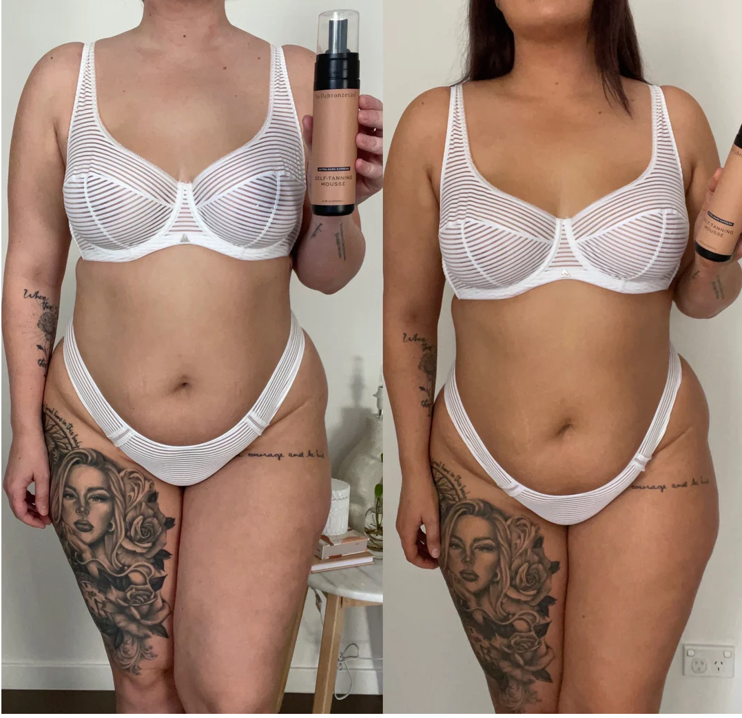The ultimate beginner-friendly duo for a smooth, streak-free bronze every time. Featuring our best-selling self tanning mousses and luxe application mitt. This is the perfect pair to make self-tanning easy, mess-free, and flawlessly even from head to toe.